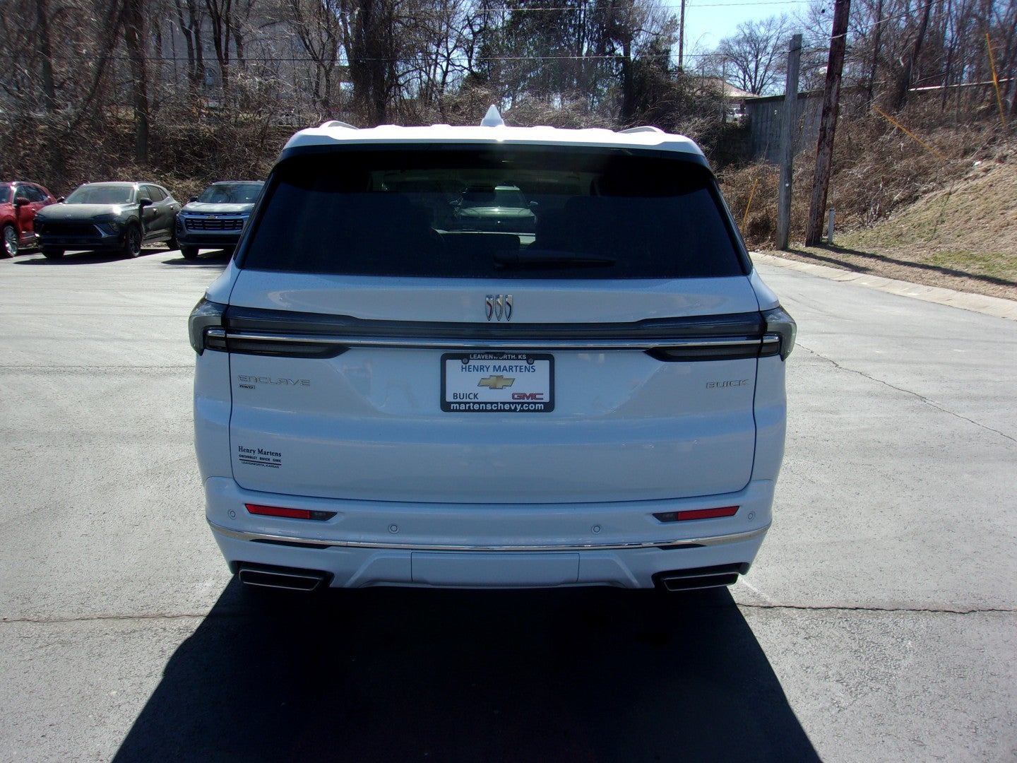 This is our sale price! Residency restrictions may apply. SEE DEALER FOR DETAILS ON ALL REBATES, INCENTIVES AND SPECIALS. New 2026 Buick Enclave Avenir! Luxury options, All-Wheel Drive for winter driving! Includes 2.5L I4 turbo engine, 8 speed automatic transmission, leather interior, heated and vented driver and front passenger seats, heated steering wheel, heated 2nd row bucket seats, sunroof, power rear liftgate, surroun vision, Bose premium sound system, wireless device charging, Buick Infotainment System with Apple Car Play and Android Auto capability, Bluetooth® capable, USB port, OnStar service and OnStar 4G LTE Wi-Fi Hotspot capable. Stop by Henry Martens Chevrolet-Buick-GMC to check it out and talk to one of our salespeople or call 1-913-828-4124, or you can text us at 1-913-755-9035. You can view our entire inventory at martenschevy.com. Follow us on Facebook at Henry Martens Chevrolet-Buick-GMC.